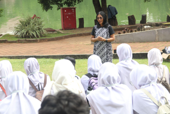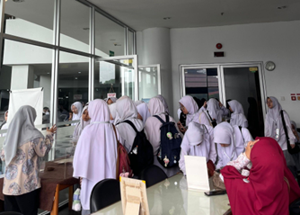 Para siswa menunjukkan antusiasme yang tinggi saat diajak untuk mengunjungi berbagai fasilitas perpustakaan. Siswa sangat terkesan dengan jutaan koleksi buku yang mencakup berbagai bidang ilmu pengetahuan, serta fasilitas yang mendukung kegiatan akademik, seperti ruang diskusi dan ruang baca yang nyaman. Mereka juga mendapat kesempatan untuk melihat lebih dekat buku-buku akademik yang digunakan oleh Sivitas Akademika UI dalam proses pembelajaran.