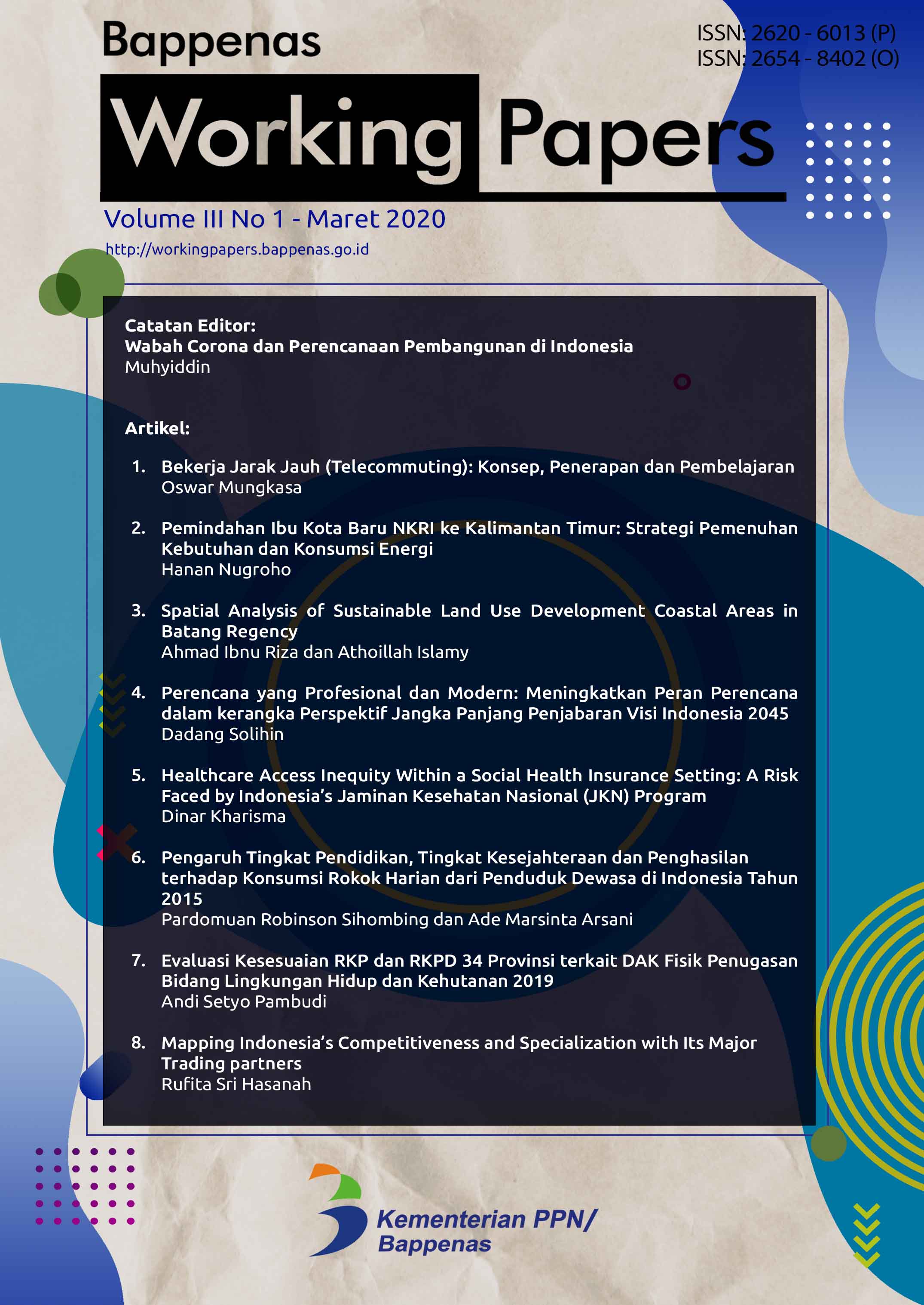Batang Regency as the northern coastal area of Java islandexperiences a problem of land use management that has not been optimal so that there is a need for analysis of land use development in the coastal area of Batang Regency. The purpose of this study is to examine the direction of land use development in coastal areas of Batang Regency with spatial analysis. This research method implementsquantitative approach while the analytical techniqueis spatial analysis. Spatial analysis is performed to identify land use of thecoastal area in Batang Regency. The study scope of coastal areasis based on administrative subdistricts located along the coast of Batang Regency. This research utilizes Spot satellite image year 2015 with the map of regionalspatial pattern plan of Batang Regency in 20112031. The spatial analysis result of land use developmentinBatang Regency’s coastal area includes the suitable category of 18.130,65 (56,32%) while the unsuitable category is 14.059,44 (43,68%). Batang Sub-district’s suitable category is 1.214,03 ha, while the unsuitable category is 2.220,51 ha. Kandeman Sub-district’s suitable category is 1.565.02 ha, while the unsuitable category is 2.610,65 ha. TulisSub-district’ssuitablecategory is 2.452,98 ha, while the unsuitable category is 2.055,80 ha. Subah Sub-district’ssuitablecategory is 5.381,89 ha, while the unsuitable category is 2.970,28 ha. Banyuputih Sub-district’s suitable category is 2.314,61 ha, while the unsuitable category is 2.127,89 ha. Gringsing Subdistrict’s suitablecategory is 5.202,12 ha, while the unsuitable categoryis 2.074,31 ha.The conclusion of land use planning development for Batang and Kandeman Sub-districts is that there are still a lot of lands designated for residential development. Subah Sub-district is for fisheries development while Tulis, Banyuputih, and Gringsing Sub-districts are for industrial development.